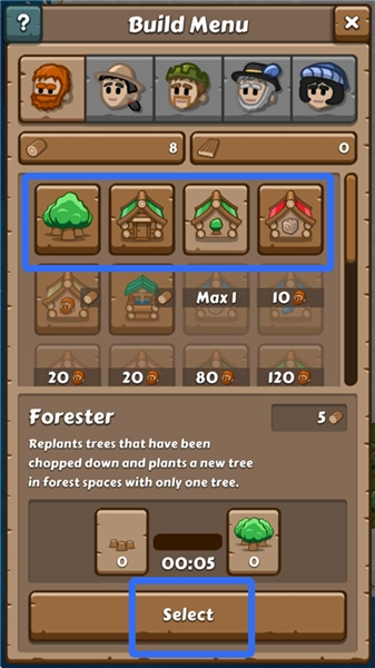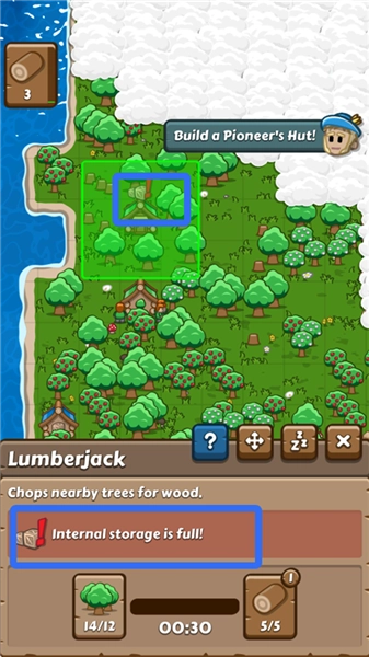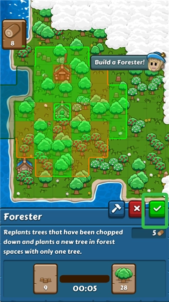 2、拥有足够木材后,点击锤子,可生产各种建筑。