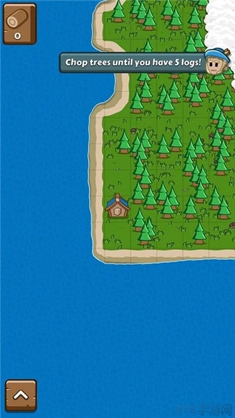 3、如图所示,右上角的提示显示我们需要收集五个树桩,点击场景里的树木就能获取树桩。
