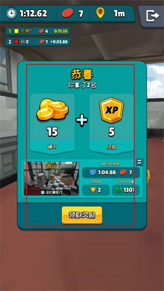 4、当结算界面弹出后,找到那个黄色的“领取奖励”按钮,点击它就能拿到相应的硬币和经验奖励了。