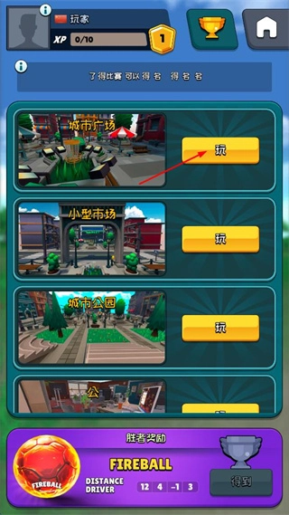 2、在关卡选择界面里,找到“城市广场”对应的黄色“玩”按钮并点击,即可进入该关卡的游戏场景。