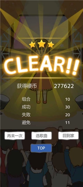 4、此时结束页面会呈现你获取的金币数量、成功与失败的次数等信息,你既可以再次发起挑战,也能够回到家中装饰房屋。