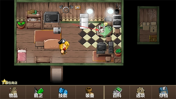 3、在室内交互场景里,你可以点击场景内的物品来实现交互,另外还能借助底部的物品、装备、存档功能栏来管理资源配置与装备情况,并且要及时进行存档操作,以此保障游戏进程不受影响。