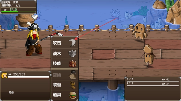 4、战斗操作界面设有攻击、战术、技能三类指令,玩家需留意角色与敌方的HP数值,同时关注自身SP状态,以此合理选择指令发起攻击,从而击败敌方单位。