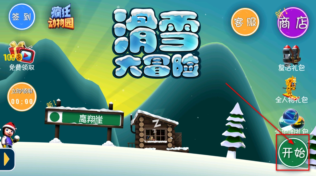 1、大家在本站下载并安装好滑雪大冒险,进入游戏后,点击商店按钮。