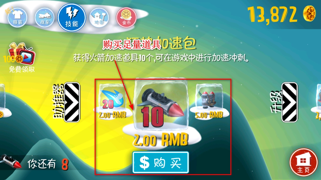 3、在这里购买足够的道具,全部都是免费的,随便买