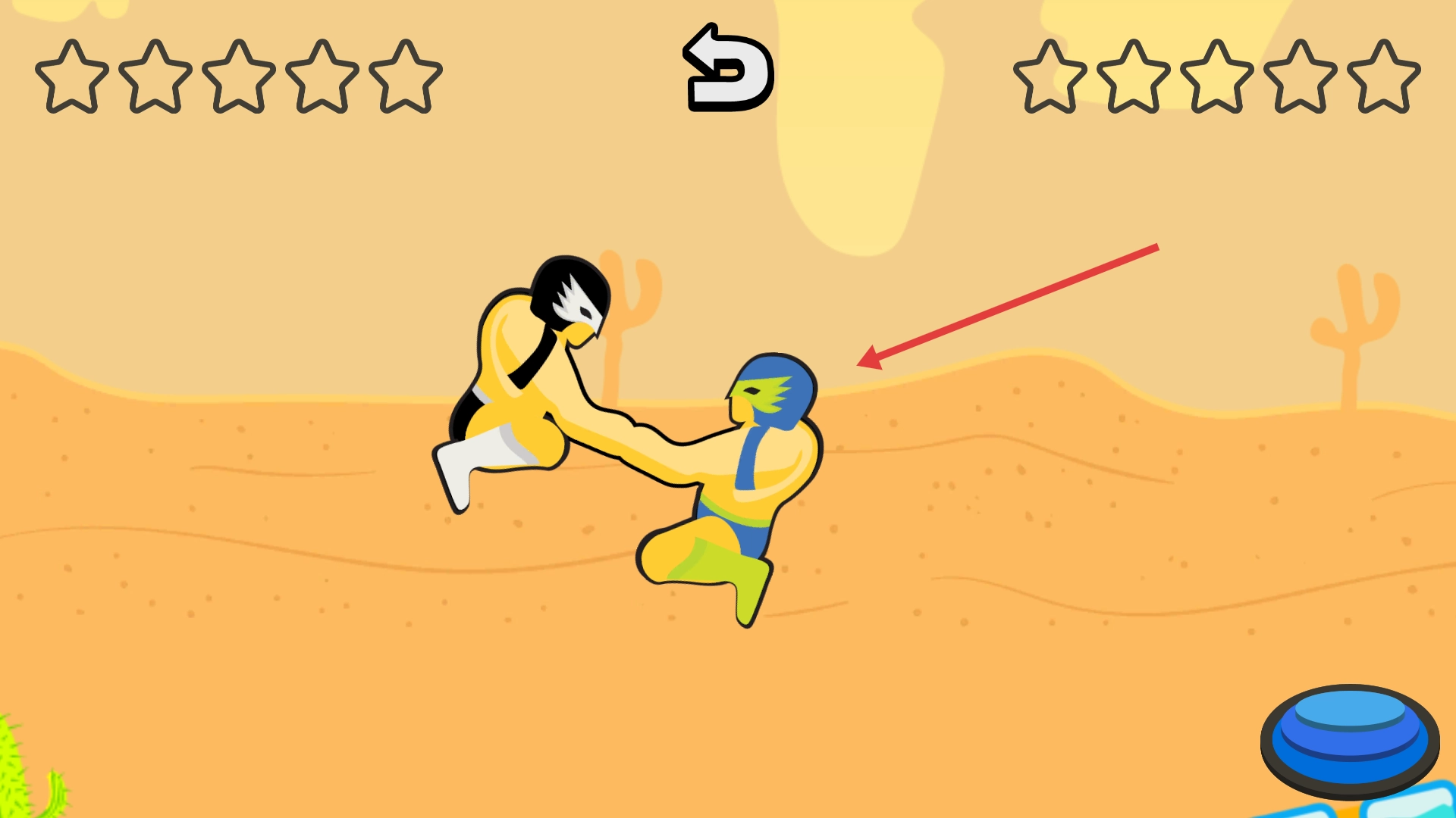 3、对战过程中,点击蓝色按钮能让角色腿部伸直发起攻击,要注意把握时机,促使对手的头部朝着地面的方向倾倒。