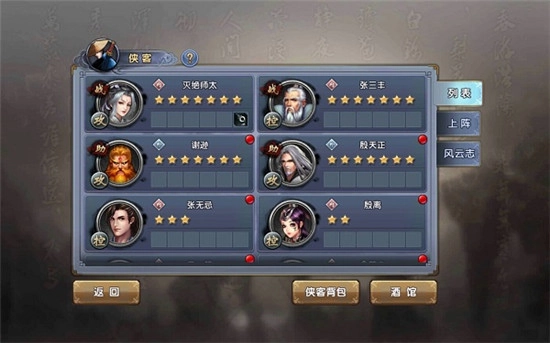 玩家在副本里能获取不少侠客装备,进入侠客界面就能把装备给侠客穿上。等侠客凑齐一整套装备时,就能对其进行升阶操作,升阶后的侠客会有更厉害的属性加成。培养侠客得用到资质丹,这种丹药可以从日常副本和抽奖活动中得到,侠客服用资质丹后,自身的各项属性都会有显著的提升。