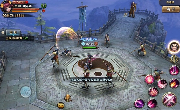 和罗汉阵副本仅需单一挑战的模式不同,在亦道峰副本里,玩家得依次应对少林、明教、峨眉、武当这四个门派的考验。每个门派都会发起2波攻击,等挺过这2波攻击后,还得挑战各门派的BOSS,具体为:少林的圆真、明教的张无忌、峨眉的灭绝师太和武当的张三丰。