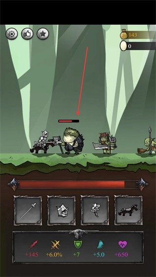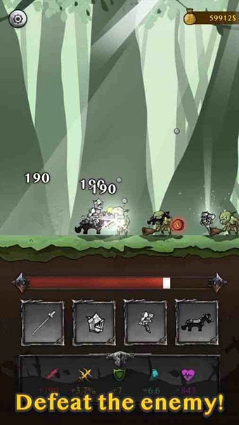 2、战胜绿色小怪物,收集金币与道具,精进骑士的武技和骑术,为接下来挑战更强大的敌人做好准备。