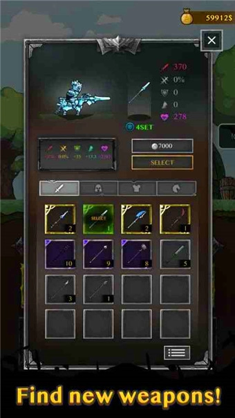 3、进入装备界面后,找到【SELECT】按钮所对应的武器并选择装备,这样可以提升攻击力,让战斗过程更加轻松。