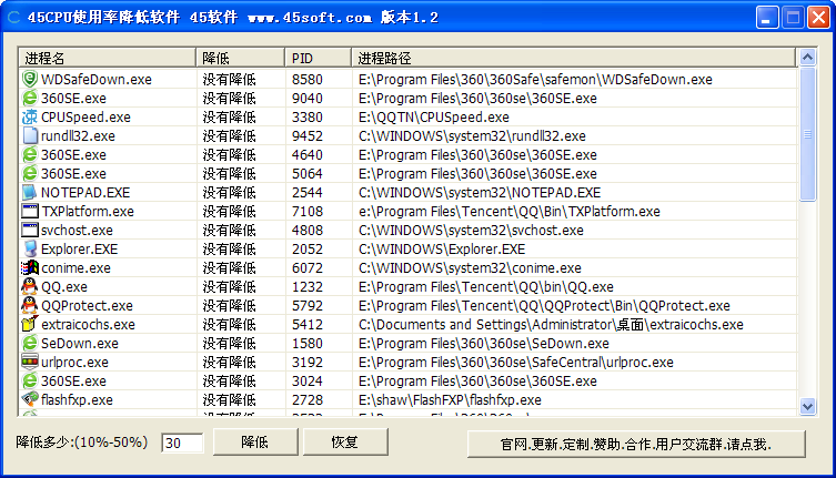CPU使用率降低软件 v1.2绿色版 1.可以设置某个进程的CPU使用率,