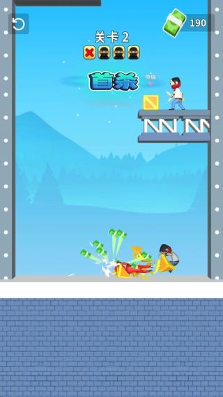 《打不过我》是一款主打刺杀玩法的闯关游戏,玩家在其中将化身特工,完成一系列暗杀任务。游戏操作方式为滑动屏幕实现跳跃,并且设有辅助线功能,能有效避免跳跃偏差的问题。游戏前期关卡难度较低,需要暗杀的目标数量较少,场景中也没有复杂的障碍物。不过随着关卡推进,对操作技巧的要求会逐渐提高,不仅会出现各类障碍物与陷阱,暗杀目标的数量也会增多,更关键的是还会遇到需要多次攻击才能击败的Boss。