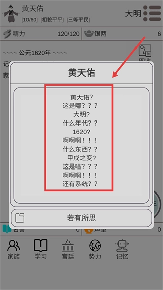2、留意家族活动里的压岁钱奖励,以此获取初始银两,为提升处世等属性储备所需资源。