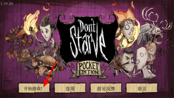 1、在游戏启动界面,点击开始游戏按钮就能进入饥荒的生存世界,这是开启资源收集与生存挑战的基础操作,需要通过探索、采集来维持角色的生存。