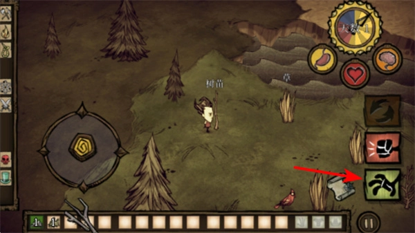 进入游戏场景后,点击工具栏里的斧头就能切换到伐木工具,这是获取木材资源的关键步骤,而木材是制作工具和搭建建筑的基础材料。