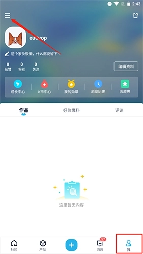 右下角【我的】版块中点击左上角的菜单按钮