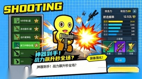 你能够用金币来购买武器,接着把两件一样的武器进行合成,从而解锁更高级别的装备。