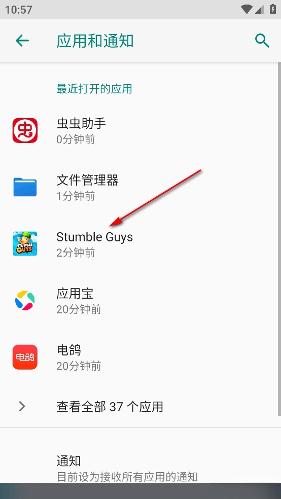 要是没有弹出窗口,就进入手机的【设置】,再点击【应用和通知】
