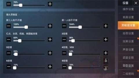 建议把它调整得和镜头灵敏度一样,特别是那些热衷于玩狙击枪的玩家,还可以稍微调高4倍镜和8倍镜的灵敏度,这样能更迅速地完成瞄准操作。
