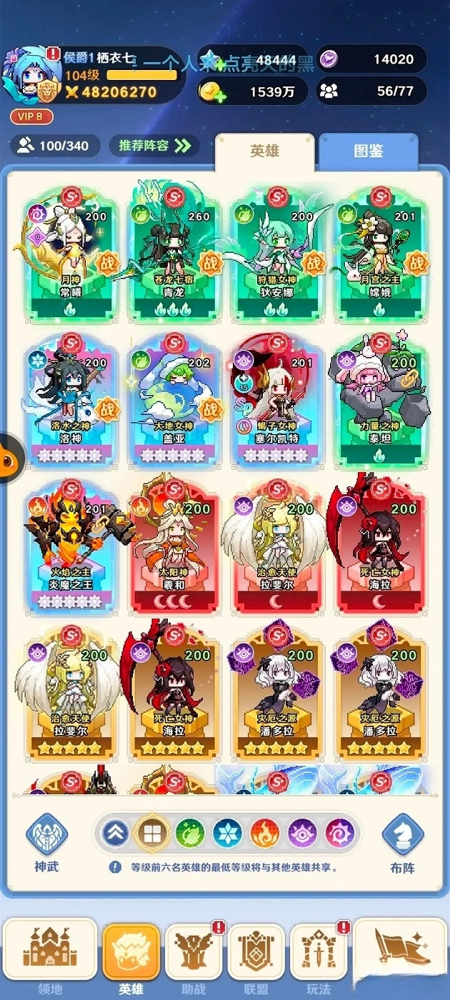 接下来在英雄界面对上阵英雄进行升级和升星操作