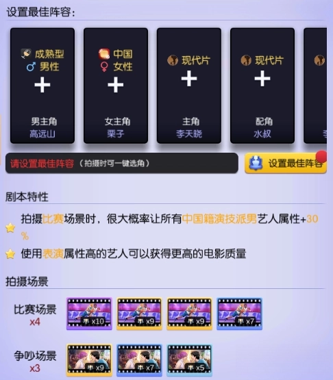 出色的改编可以提升剧本在角色设定与场景构建等关键要素上的表现,当前版本仅包含1-4星剧本,剧本星级越高,其对应的潜力上限也就越大。熟悉剧本的独特属性,搭配适配的艺人阵容,并持续尝试不同的组合方式,往往能收获意想不到的效果。