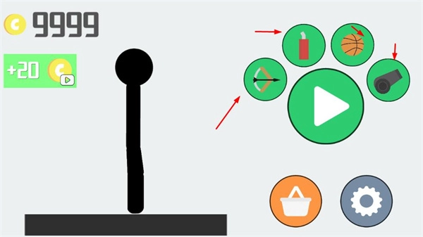 可以选择弓箭、篮球、加农炮等不同类型的武器,金币能够用来进行解锁武器、购买武器之类的操作。