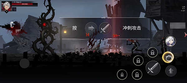 点击向右的箭头图标就能向右冲刺,而通过滑动摇杆则可以选择冲刺的方向。