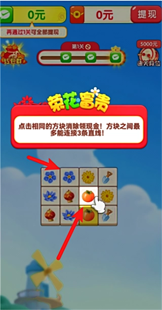 玩家通过连接三个及以上相同图案的方块来消除它们,达成关卡目标就能过关,还能领取相应的红包。