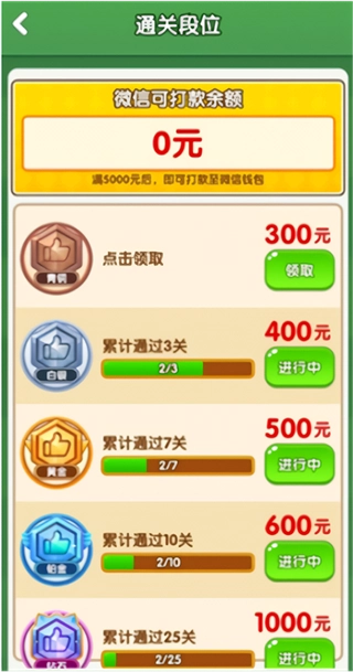 游戏里设置了不同的段位成就,玩家在闯关过程中不断提升段位,既能解锁更多奖励,也能增强自身的成就感和挑战的动力。