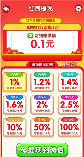 积攒的红包都能按百分比兑换获取,兑换比例还能通过闯关来提升呢!