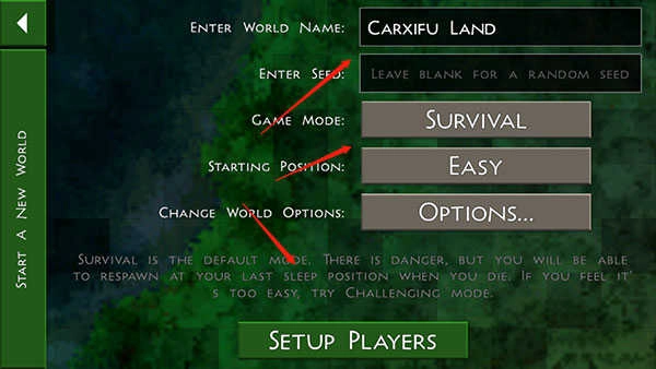 世界名称建议不要使用中文,直接输入数字即可,这是游戏模式,此处附有注释。