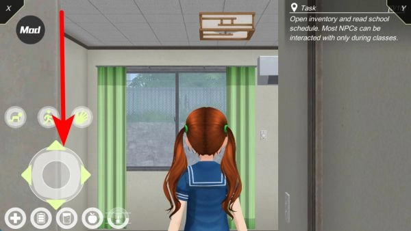 通过左下角的移动操控区域,你能够操控角色在校园内移动,去往不同的教室、活动区域等地,探索校园的每一个角落,开启丰富多彩的校园生活体验。