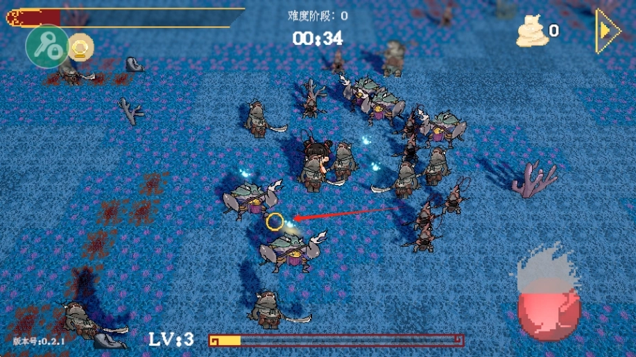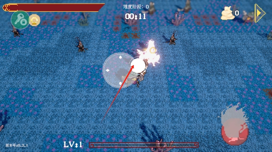 把攻击目标锁定在箭头所指的敌人身上,发起攻击能迅速歼灭敌人,通过积累经验来让角色等级得到提升。
