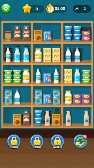《王者货架收纳》是一款休闲益智类的收纳整理游戏,核心场景设定在杂乱的货架之间。玩家将化身为收纳达人,需要在限定时间内,把货架上琳琅满目的果酱、酸奶、果汁、酱料等各类物品归置得井井有条。游戏过程中,玩家需通过仔细观察与灵活操作,将相同类型的物品归类到同一个货架格子中,期间若能触发连击机制,还能获得更高的分数奖励。