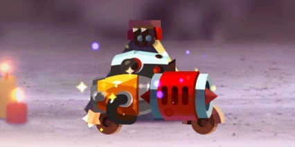 飞天磐石这个流派,核心是采用磐石车身,并且不安装轮子。配置上是一个武器孔搭配一个位置相对靠上的辅助孔,辅助孔装推进器,武器孔则配备圆锯。玩法上可以依靠推进器飞过去绕到敌人后方进行攻击,这种打法对远程输出单位基本能形成克制。不过需要注意的是,要小心被泰坦或者反弹器击飞到场外,而且在高段位对局中,容易被双管火箭克制。