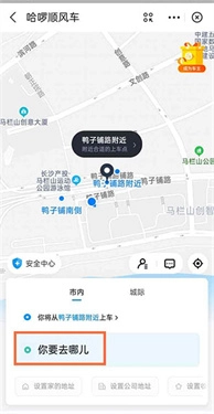 1、进入哈罗顺风车页面后,点击你要去哪儿。