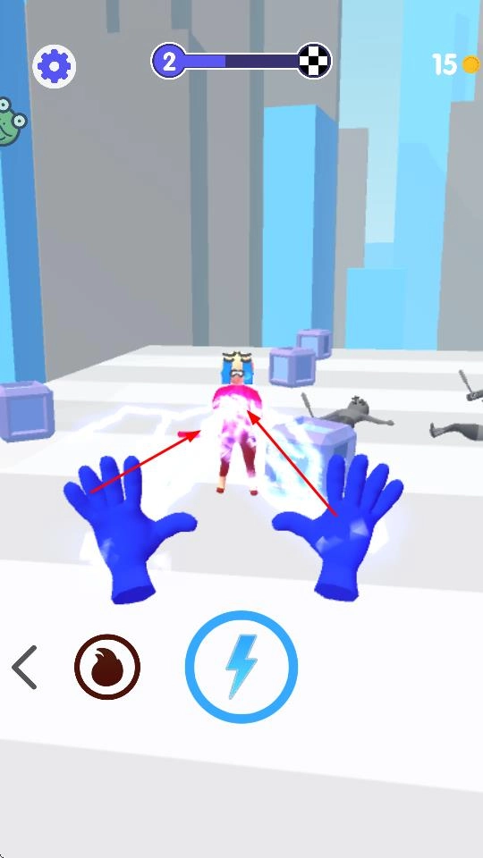 核心玩法围绕魔力双手展开:玩家通过操控这双魔力之手,以简易操作完成防御与推进动作——既要精准拦截靠近的小人,又需灵活抓取场景内的道具,这种独特的操控设计让玩法更具辨识度。