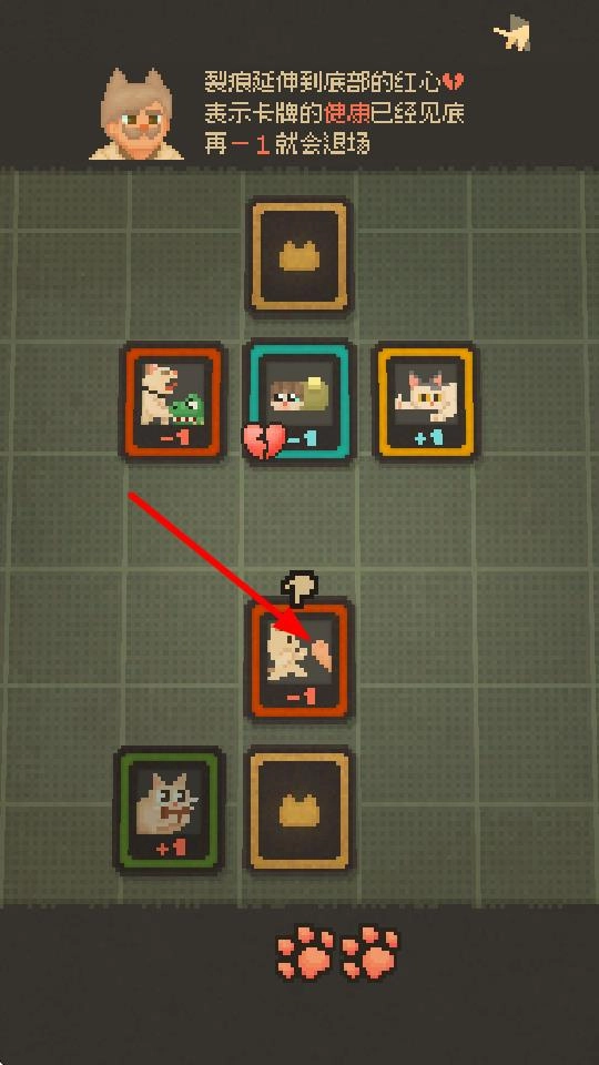 要留意卡牌的使用次数,当卡牌上的红心裂痕蔓延至底部时,若再使用一次该卡牌便会离场,因此需要对卡牌的使用进行合理规划。