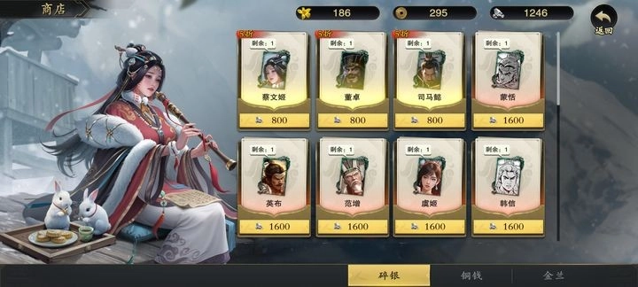 吕雉的玩法比较吃操作,实力上限和下限差距很大,购买优先级需要根据个人情况来定,也可以用范增或韩信来替代她。