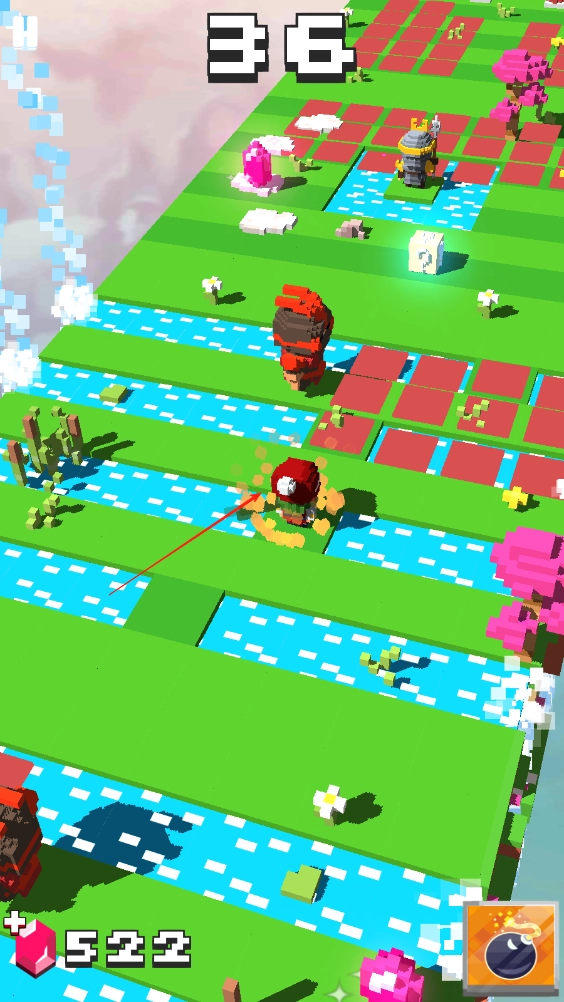 点击屏幕时,忍者会向前跳跃一格;在前进的过程中,要收集粉色晶石,同时还得留意躲避障碍。