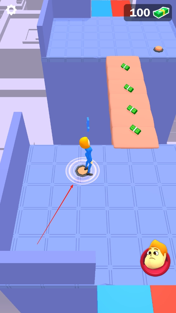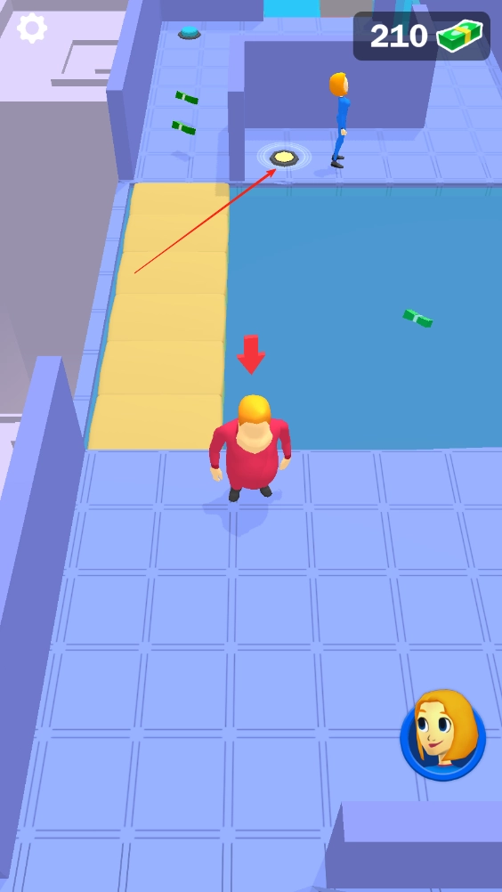 红色的地板仅限男孩行走,男孩需走到尽头踩下按钮,开启第一扇门后,女孩避开摄像头的追踪溜进去就行。