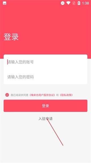 2、在登录界面点击【入驻申请】选项,即可进入商家注册类型选择页面。
