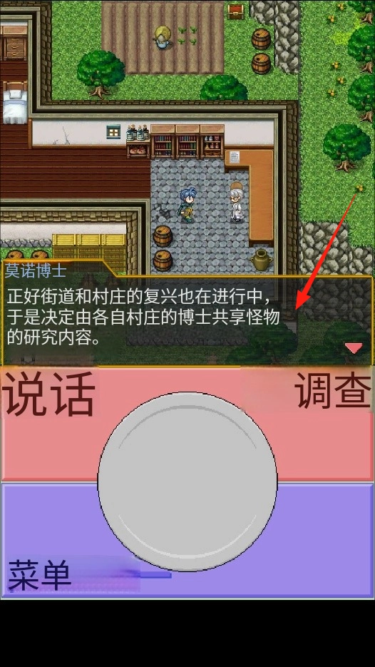 在村庄场景中,找到莫诺博士并与其对话,聆听他讲述村庄复兴与怪物研究相关的内容。对话结束后,你可以继续在村庄内探索,看看其他村民是否有任务可接,或者进入房屋搜寻道具,以此推进故事的发展。