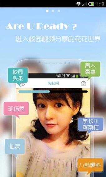 面向2700所高校,辐射港澳台所有大学,无论想看哪个学校的新鲜事都可以实时知晓。随时随地想知道校园里发生了哪些新鲜事?有心想认识今天在食堂、在校道上让你脸红心跳的Ta?呆在寝室无聊,给大家小露一手,求观众,求鼓掌~~