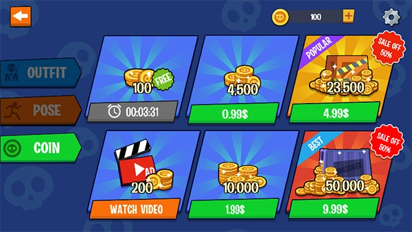 玩家能够在商城购买工具来助力自己击败它,通过折磨和打击这个火柴人,以此获取更多的分数。