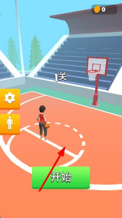 进入游戏后,先选择投篮模式,接着留意篮筐的位置和距离,然后通过滑动屏幕来调节角色投篮的力度与角度,试着完成第一次灌篮。