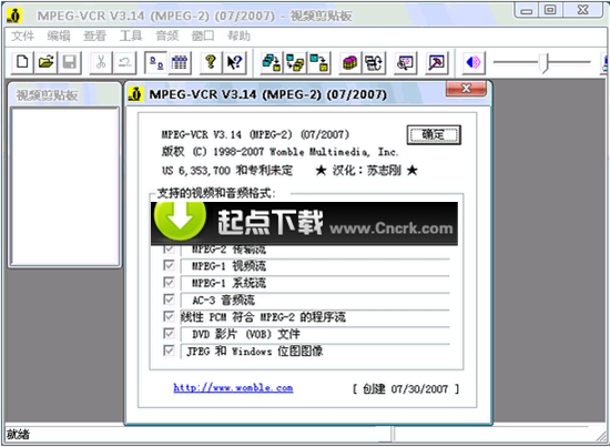 Womble MPEG2VCR 是一款小巧实用的 MPEG1、MPEG2 剪切编辑软件,可编辑 DVD、VCD 文件,将 DVD 文件的视频转换为 m2v格式速度很快,可截取 DVD 画面成为 BMP 图片,与 PowerDVD 的载图效果不太一样。