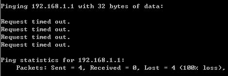 输入命令:Ping 192.168.1.1,回车。如果屏幕显示为: