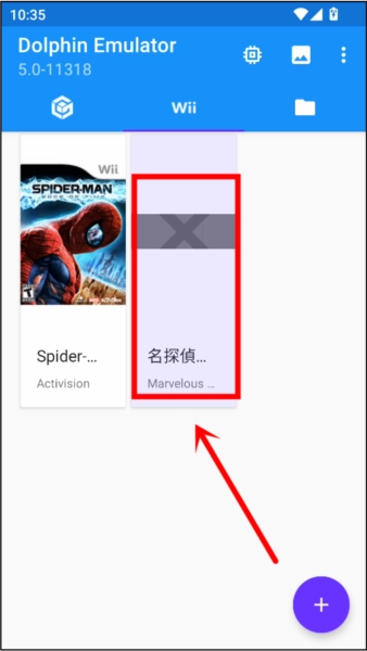 游戏解压缩完成后,我们会看到整合了游戏资源包的海豚模拟器,此时只需点击界面右下角的加号按钮即可。