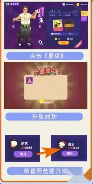 厨师阵容配置:在可用厨师里挑选合适的人员组成战斗队伍。
